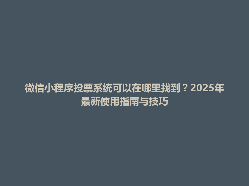 豆包网 微信 延庆县微信小程序投票系统可以在哪里找到?2025年最新使用指南与技巧